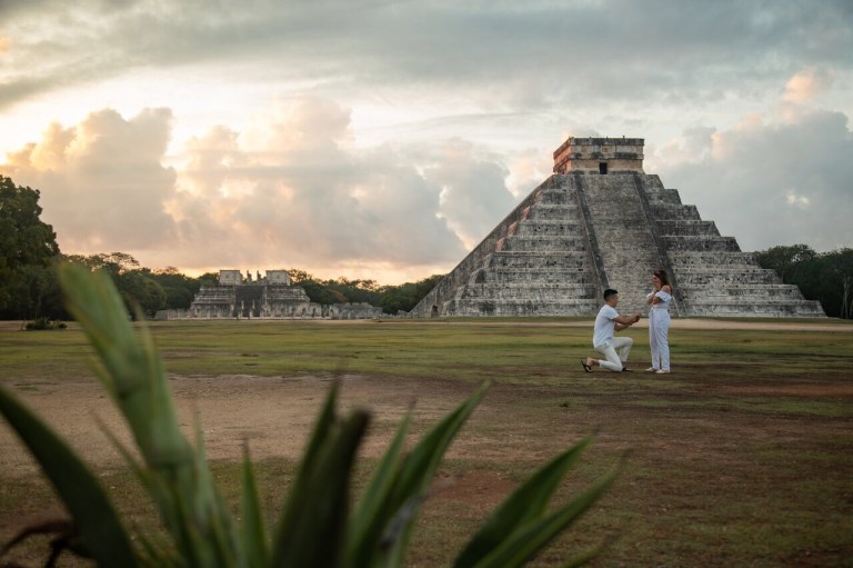 My favorite day of this trip. My (now) fiance at the time, booked a private Chichen Itza tour through this company called Bushman. The tour included everything from transportation, meals and an amazing photographer. We woke up at 2am because our tour guide was picking us up at 3am, since it was a sunrise tour. Thankfully, I wasn’t my usual grumpy self (due to lack of sleep) and enjoyed the trip entirely. We started off by walking around the ruins and learning about their history. Side note: Did you know the famous pyramid in Chichen Itza is called the Kukulcan? Towards the end, as the sun was rising, our photographer asked us to take some photos in front of the Kukulcan. The other couple we were with took a photo first and then it was our turn. I think this is why I didn’t see it coming, it was all so casual and amongst friends. Also, remember the lack of sleep? That is when Steve, the love of my life, turned to me how he knew I was the one for him and then after a minute of making my heart melt with his words, he bent the knee (not like the Game of Thrones, but similar). All I could feel is my heart racing alongside his, both of our eyes teary and a huge lump in my throat that wouldn’t let me speak. Seeing the man of your dreams tell you heartfelt things at 6am really does something to a woman. Of course, I said yes to him and later found out that he had been planning this for months already. He, actually, had purchased the diamond for the ring 7 months prior to this trip. The rest of the tour felt magical after that.